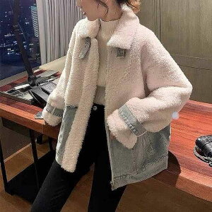 Amazon ボア ジャケット コート レディース レトロ ゆったり ショート アウター 長袖 防寒 暖かい 秋冬 もこもこ ふわふわ ボアコート ライダース ボアジャケット あったか 通学 通勤 女性用 フリーサイズ オフホワイト コート ジャケット 通販